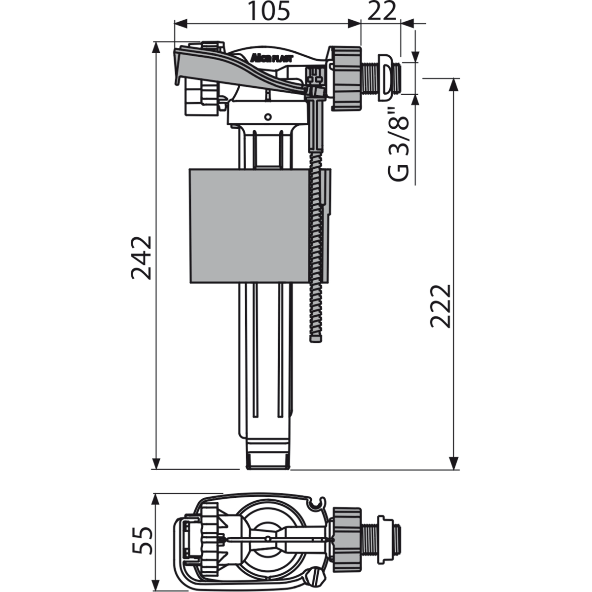 Alca plast A17-3/8″, apatinio pripildymo mechanizmas ALCADRAIN, 3/8″