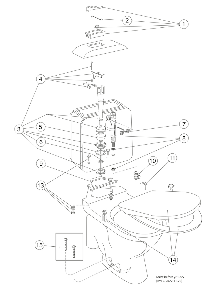 Gustavsberg Unitazo modeliai iki 1995 m. nuleidimo mechanizmas