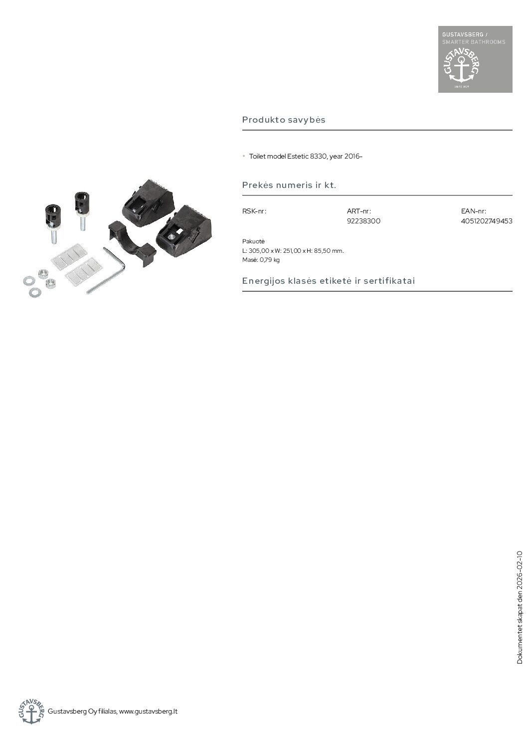 Gustavsberg klozetų dangčiu atraminis komplektas