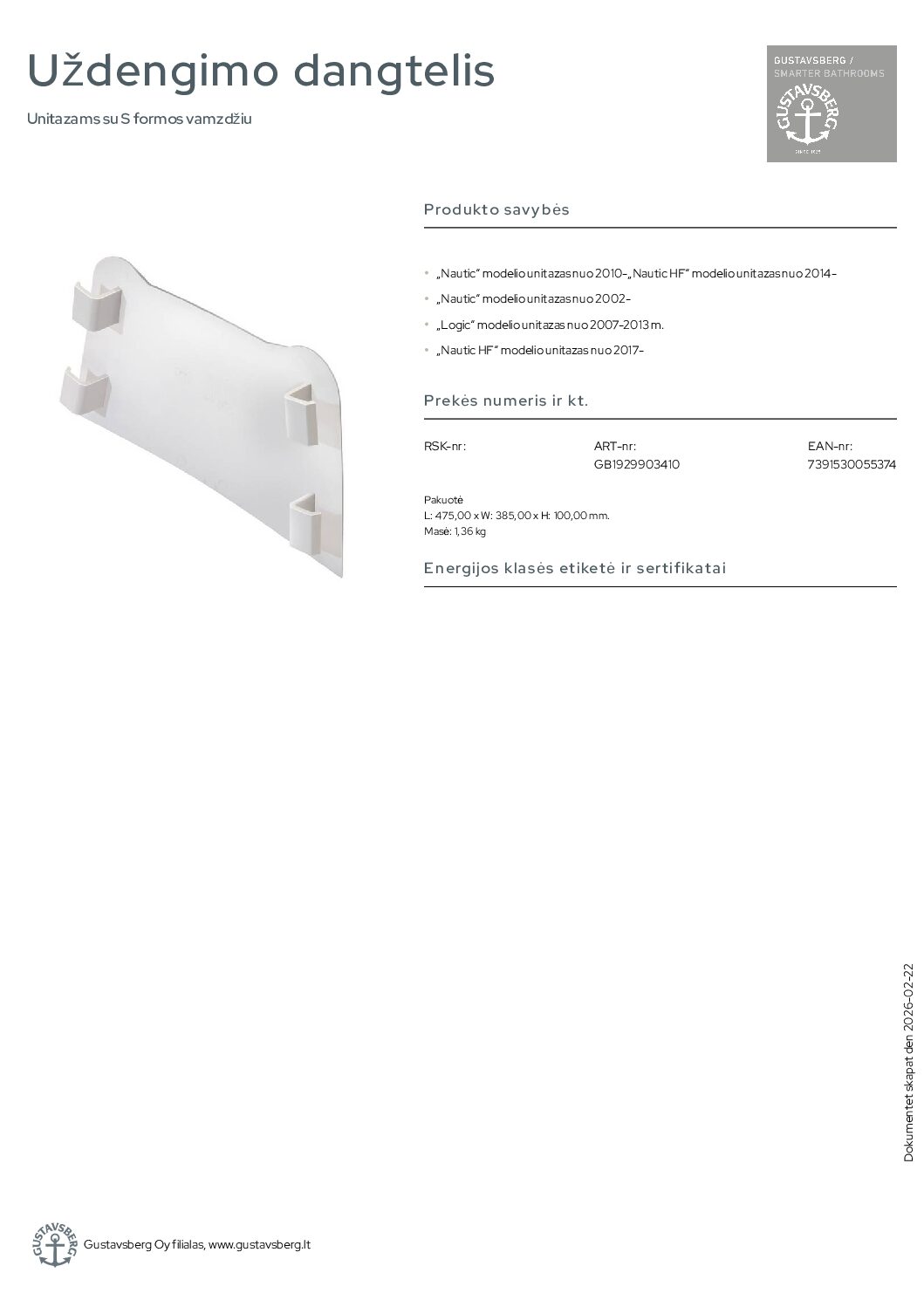 Gustavsberg Nordic 325, dangtis baltas
