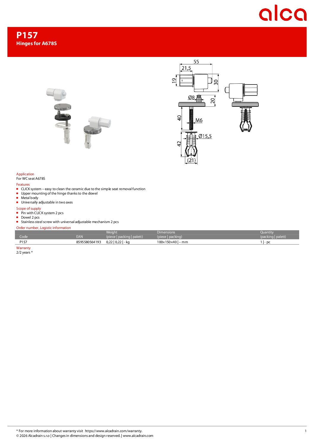 Alca plast P157Z, klozetų dangčiu tvirtinimai