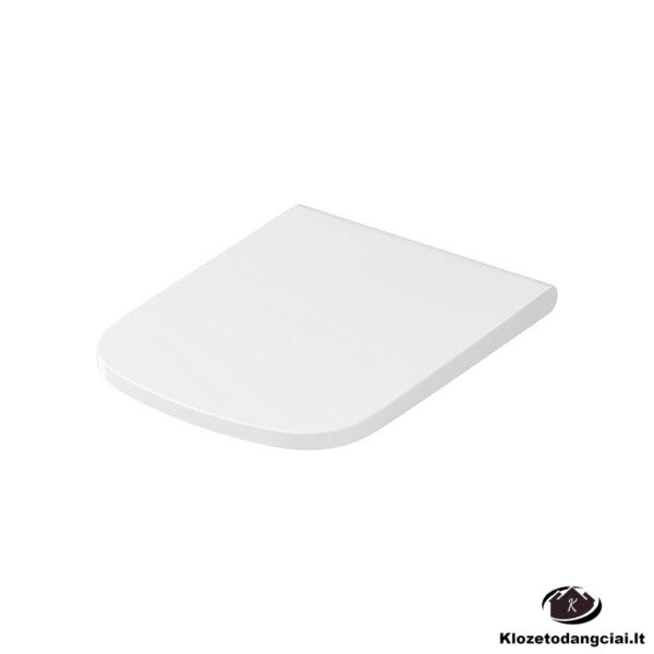 Cersanit LARGA OVAL SLIM Itin plonas, lėtai užsidarantis klozeto dangtis puikiai tinka moderniam ir elegantiškam interjerui. Jis pagamintas iš pažeidimams atsparaus duroplasto, pasižyminčio antibakterinėmis savybėmis (sudėtyje yra CAS 130328-20-0 sidabro-cinko ceolito). Paprastas dizainas užtikrina lengvą valymą, o novatoriška „One Button Easy-Off“ funkcija leidžia greitai ir lengvai nuimti dangtį vienu mygtuko paspaudimu. Lėto uždarymo funkcija užtikrina laipsnišką dangčio nusileidimą, neleidžiant jam staiga atsitrenkti į unitazą. Specialiai suformuotas dangčio dizainas užtikrina didelį naudojimo komfortą, o antibakterinės savybės palengvina vonios kambario higieną.