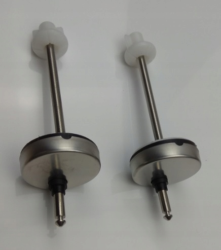 Cersanit klozetų dangčiu tvirtinimai. Metaliniai varžtai, 9,5 cm ilgio. Kotelio skersmuo 6 mm.Plastikiniai elementai, stabilizuojantys varžtus tualeto dubenėlio skylėse. Plieniniai maskavimo elementai. Prieš pirkdami patikrinkite kaiščio skersmenį, jis turi būti 6 mm (2019 m. Cersanit plokštės kai kuriuose modeliuose turi kitokį skersmenį). Smeigtukas negali būti per trumpas arba per ilgas ir turi būti tinkamo skersmens, kad puikiai tiktų Cersanit plokštėms.