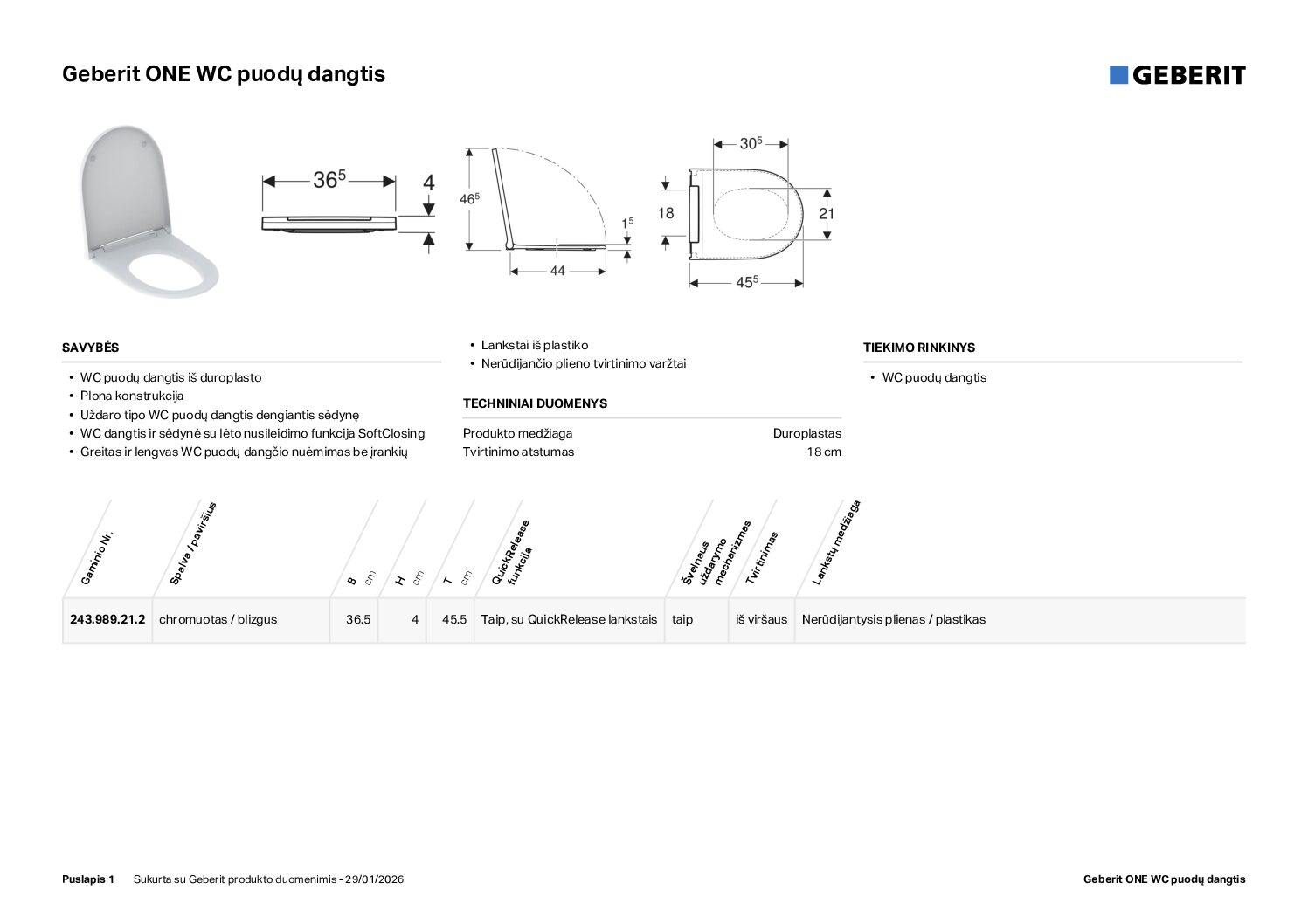 - Gamintojas – Geberit Šveicarija.
