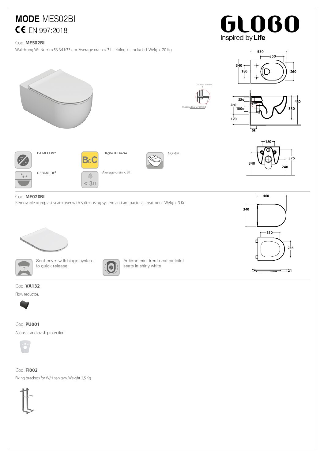 GLOBO Mode lėtai nusileidžiantis dangtis. Nuimamas duroplast sėdynės užvalkalas su minkšto uždarymo sistema. Skirta tualeto dubenims MES02BI art. ME001BI