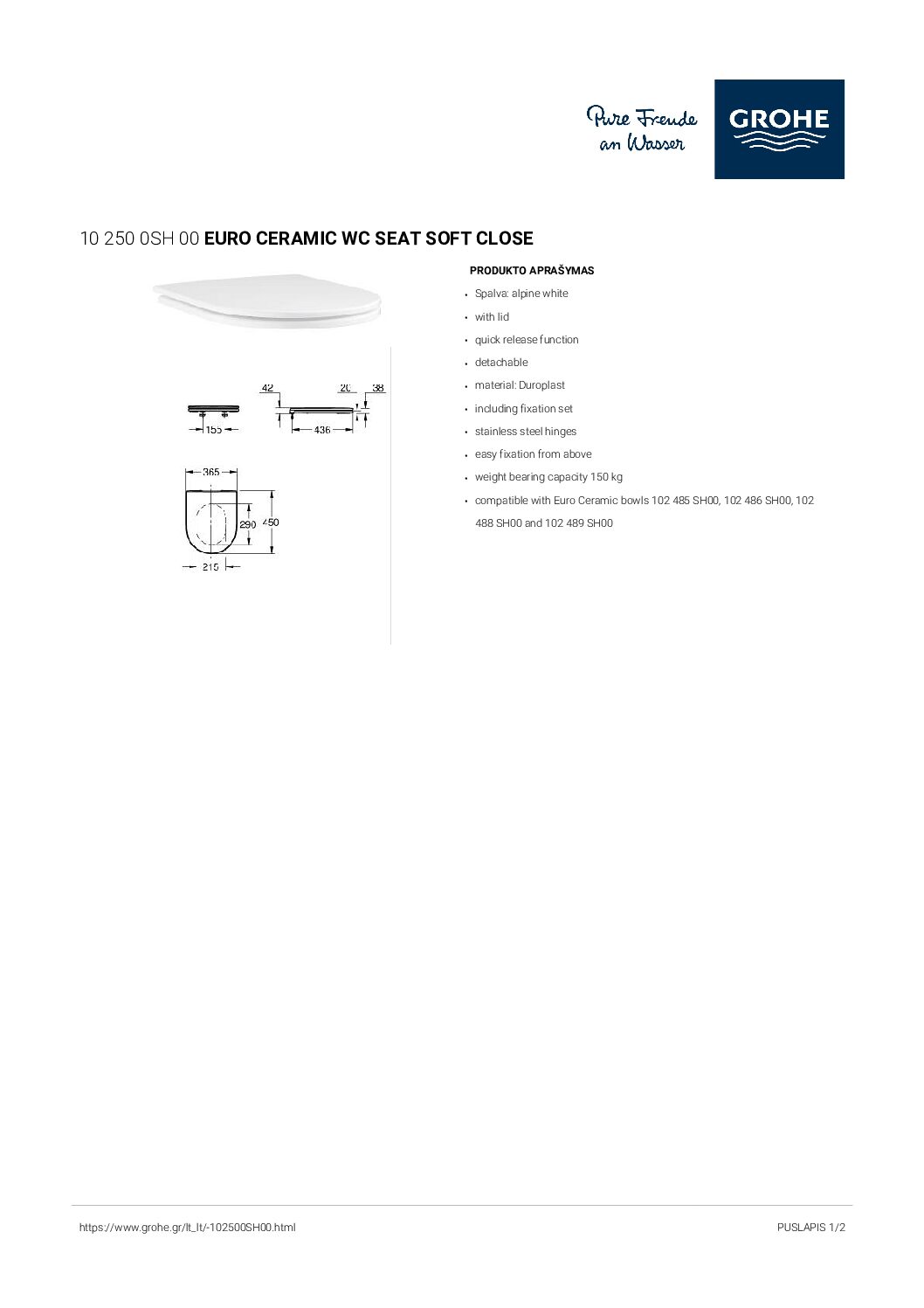 GROHE Euro Ceramic SLIM, dangtis baltas su lėtu nusileidimu. Švelniai užsidaranti unitazo sėdynė ir dangtis. Greito atlaisvinimo sėdynė lengvam valymui.