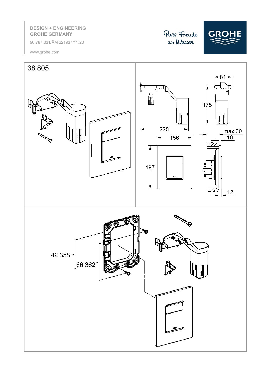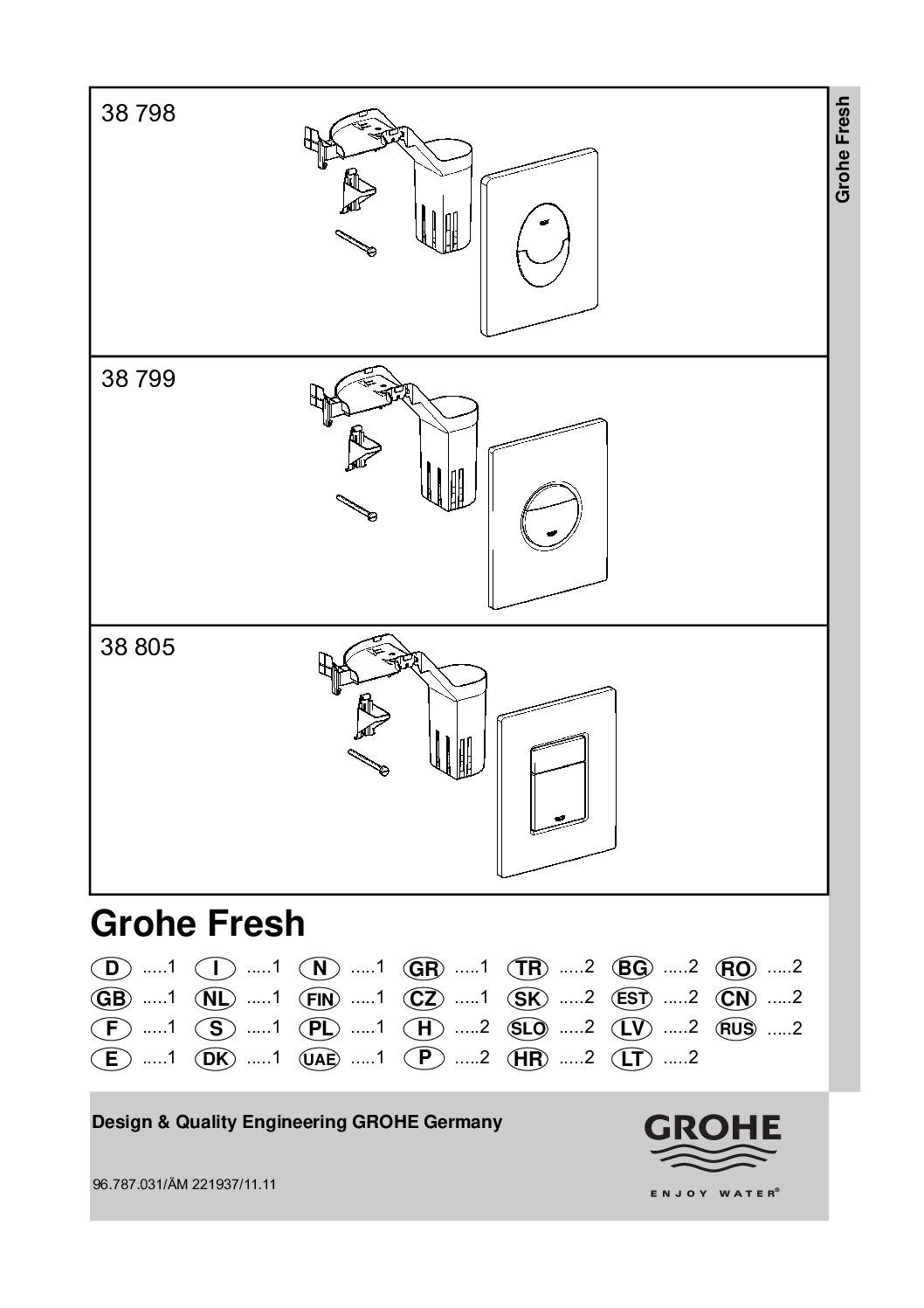 GROHE Nuleidimo mygtukas. „Skate Cosmopolitan“ mygtukas su GROHE Fresh. GROHE sieninė mygtuku dvigubo nuleidimo arba paleidimo ir sustabdymo funkcijai su GROHE Fresh tvirtinimo rėmeliu su atidarymo funkcija ir dėžute aromatinių dozatorių laikymui; tik bechlorėms tabletėms; pneumatiniam išleidimo vožtuvui AV1; vertikaliam ir horizontaliam montavimui; 156 x 197 mm, pagaminta iš ABS plastiko; GROHE StarLight® chromo apdaila; GROHE EcoJoy® technologija, užtikrinanti mažesnį vandens sunaudojimą ir tobulą srautą.