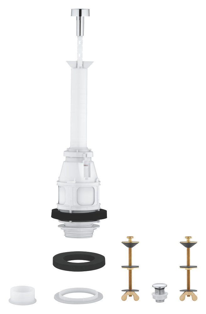 GROHE Servo išleidimo vožtuvas. Universalumas: suderinama su horizontaliais ir vertikaliais nuotekų išleidimo angomis. Elegantiška apdaila. Ant grindų montuojamiems unitazams su atviru arba pusiau paslėptu bakeliu. Horizontalūs ir vertikalūs nuotekų išleidimo angos.