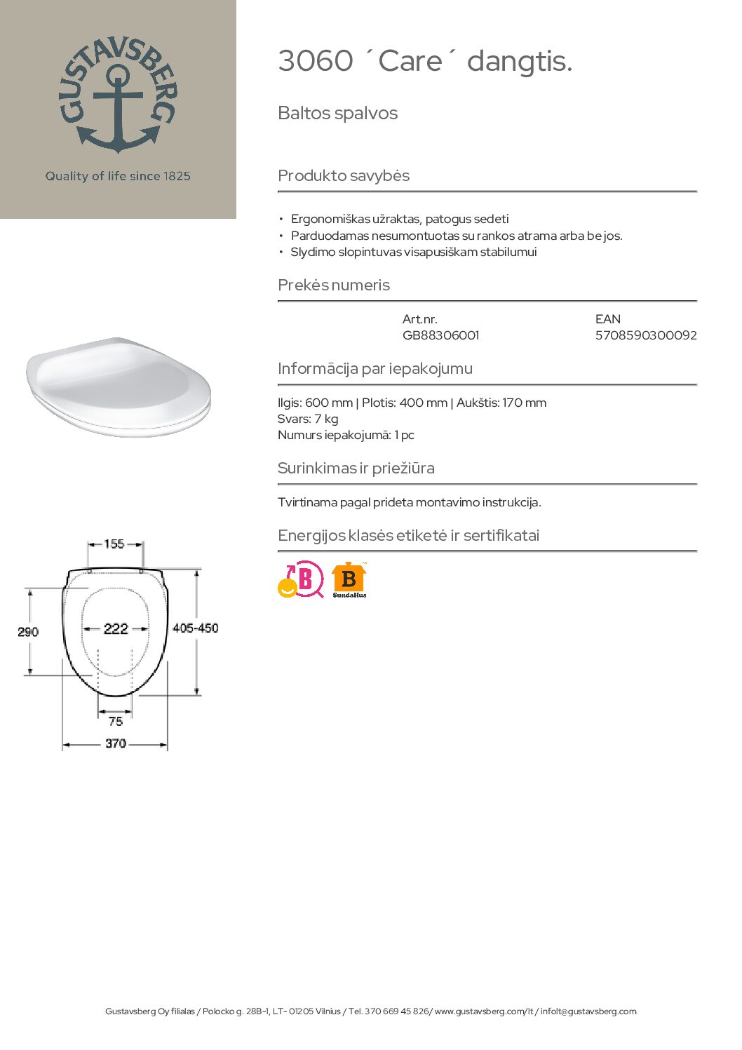 Būkite pirmas aprašęs “Gustavsberg 3060 Nautic Care dangtis”