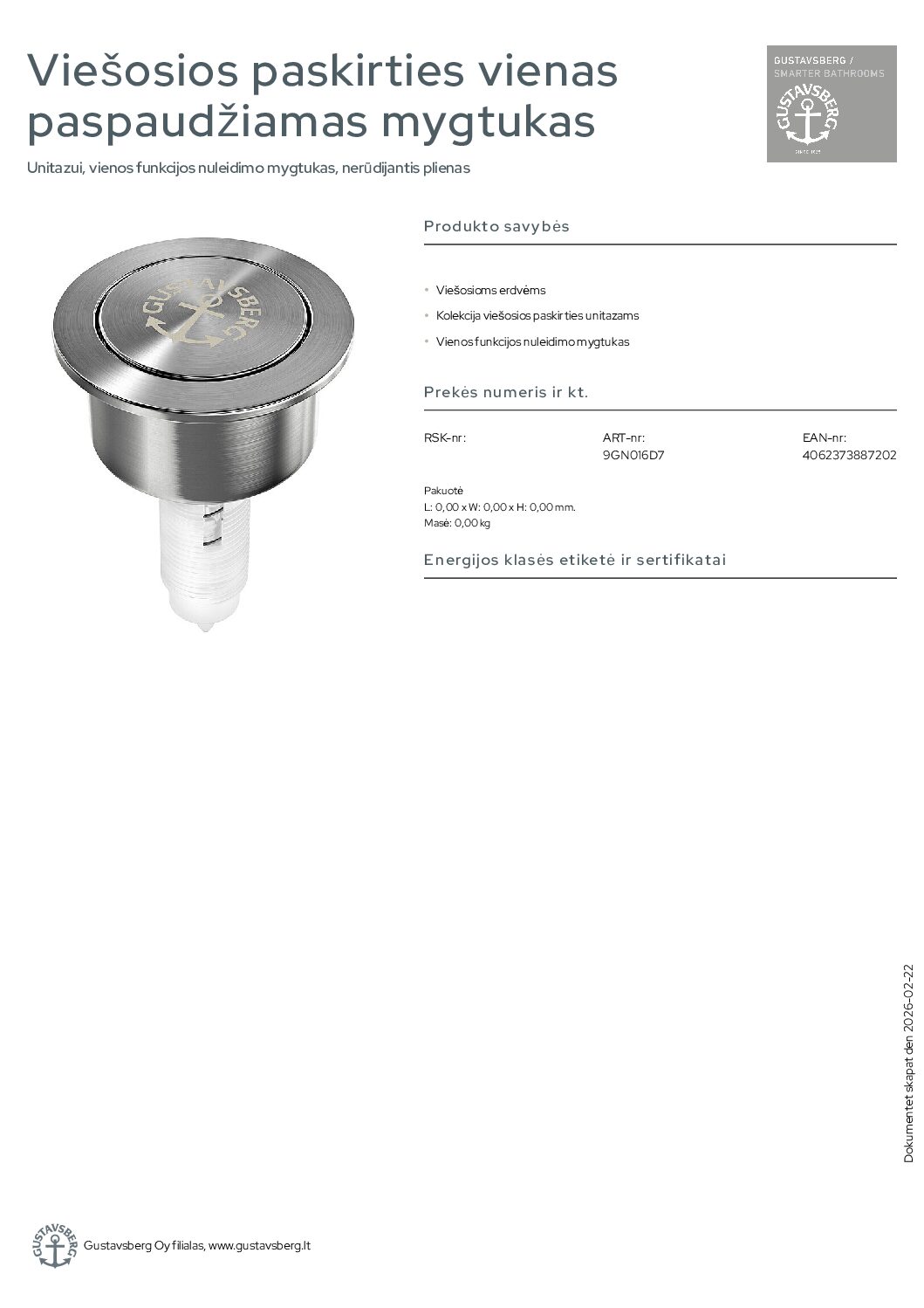 Gustavsberg 6000 serija nuo 2019- nuleidimo mygtukas. Vandens bakeliui, unitazas. „Estetic“ modelio unitazas nuo 2017-