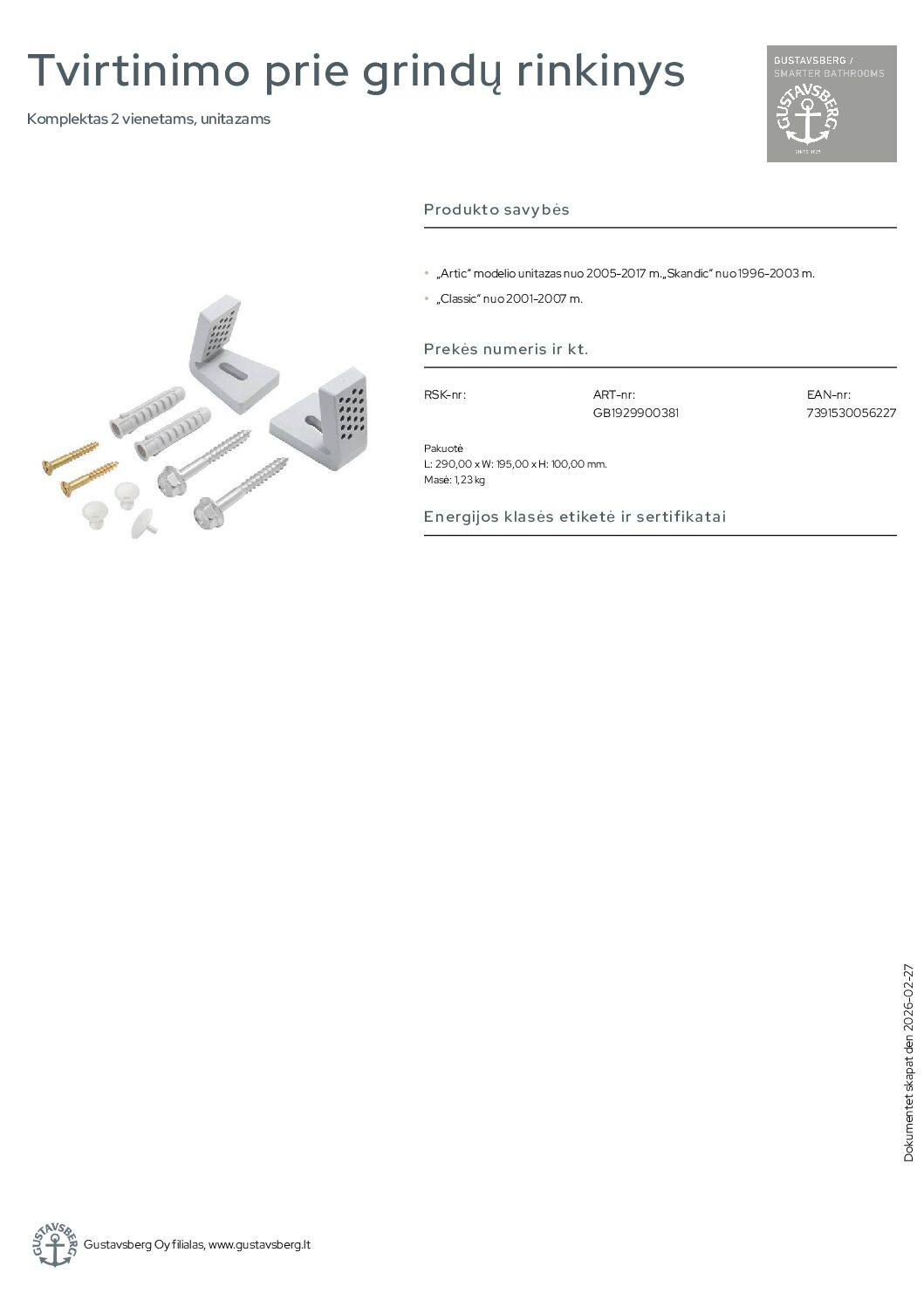 Gustavsberg Artic nuo 2005-2017 m. tvirtinimo prie grindų rinkinys