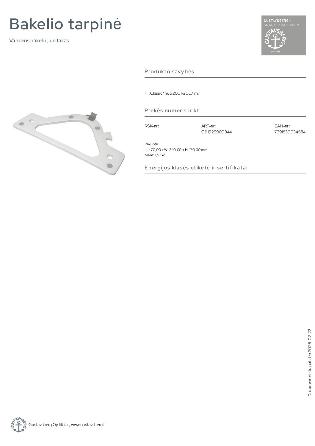 Būkite pirmas aprašęs “Gustavsberg Classic nuo 2001-2007 m. bakelio tarpinė”