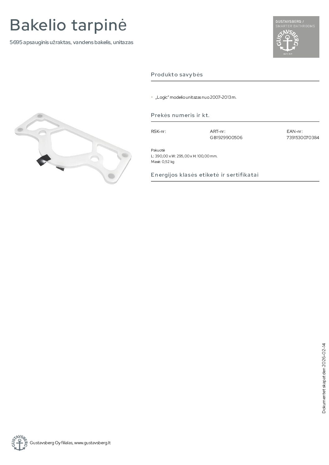 Būkite pirmas aprašęs “Gustavsberg Logic nuo 2007-2014 m. bakelio tarpinė”