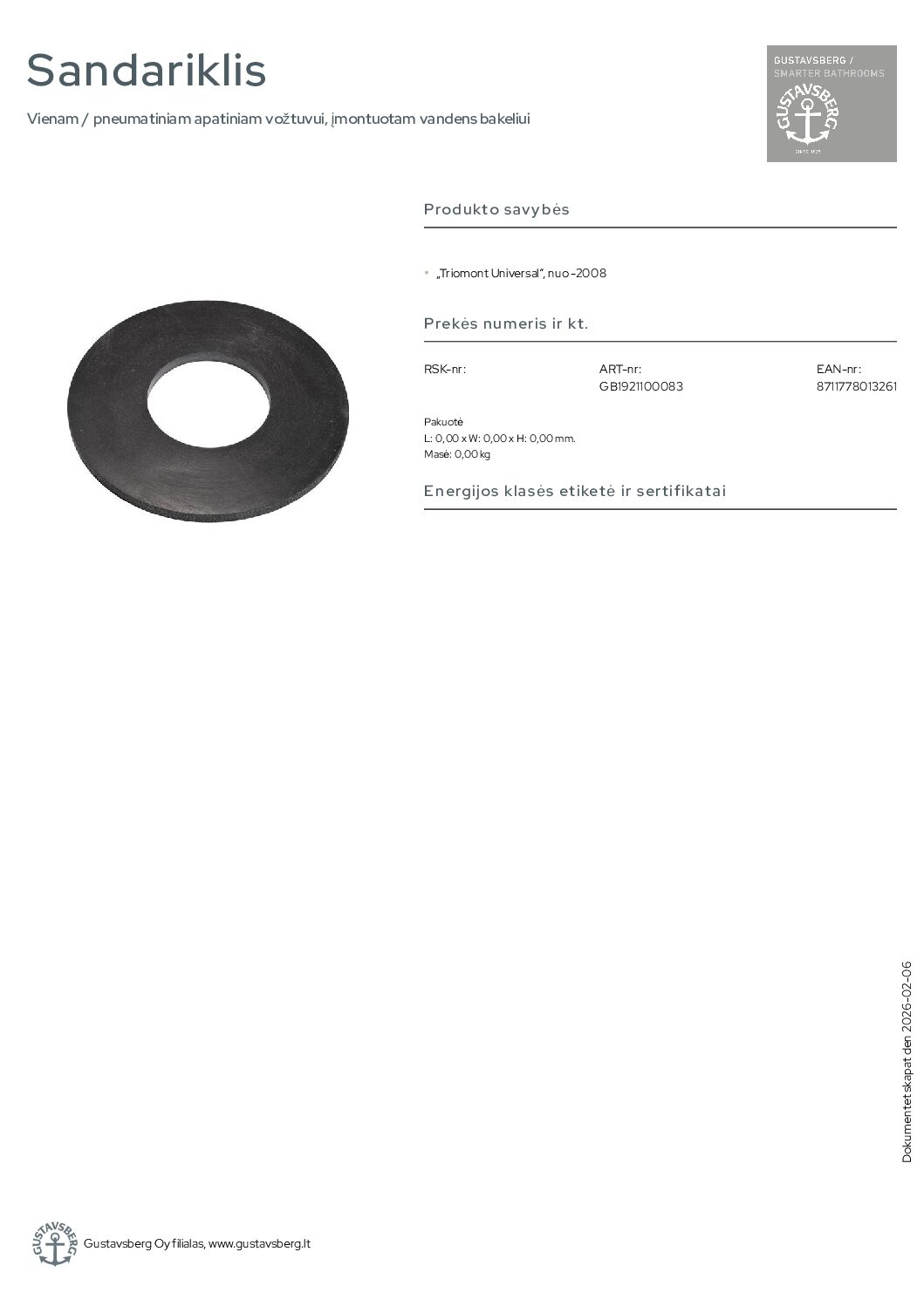 Būkite pirmas aprašęs “Gustavsberg Triomont Universal“, nuo -2008 sandariklis”