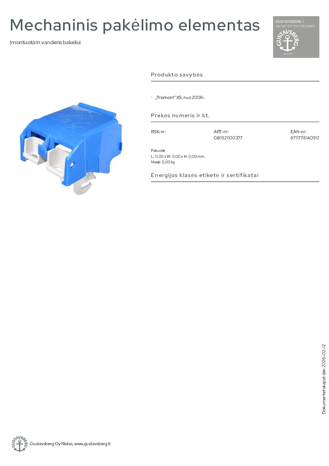 Gustavsberg Triomont XS, nuo 2008-mechaninis pakėlimo elementas. Įmontuotam vandens bakeliui. „Triomont“ XS, nuo 2008-