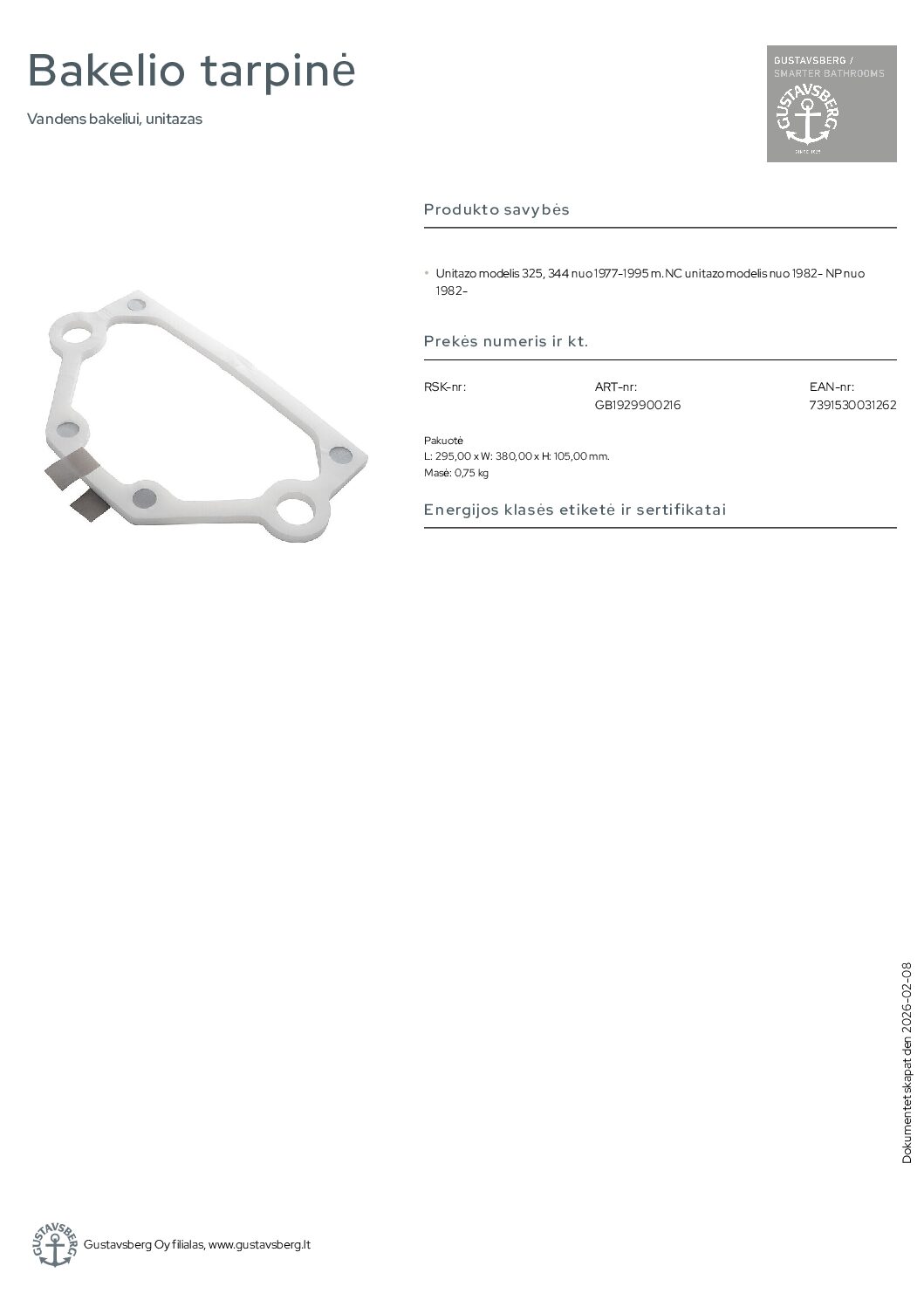 Gustavsberg Unitazo modeliai iki 1995 m. bakelio tarpinė. Vandens bakeliui, unitazas. Unitazo modelis 325, 344 nuo 1977-1995 m.NC unitazo modelis nuo 1982- NP nuo 1982-