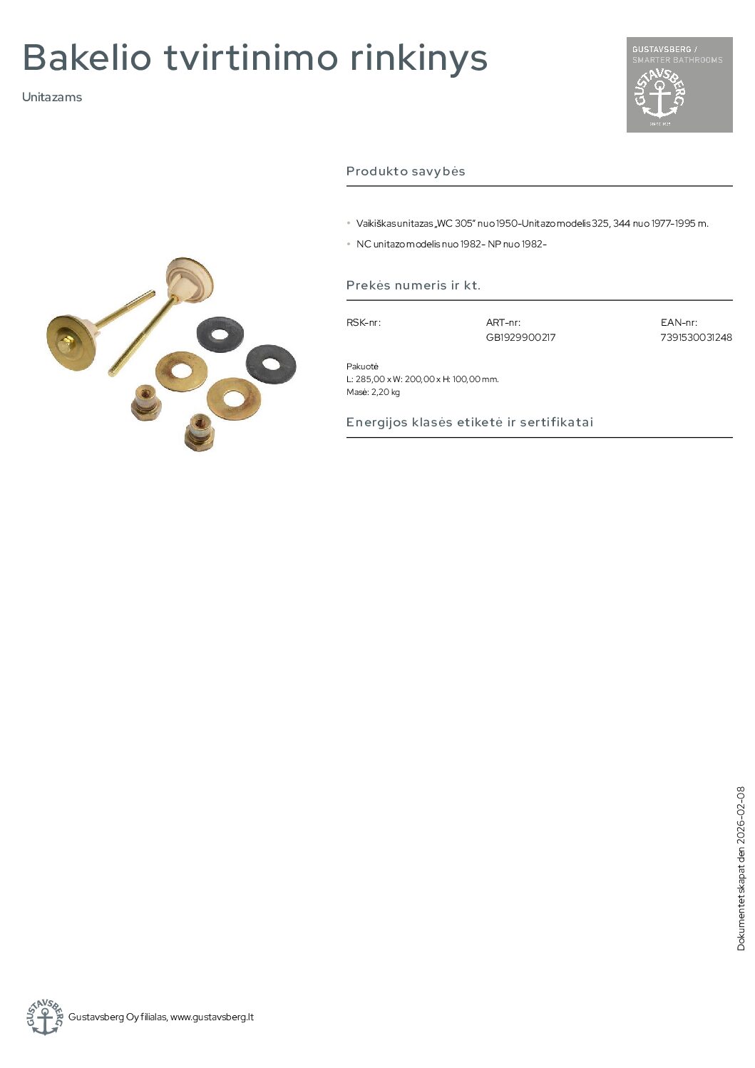 - Gamintojas – Gustavsberg Švedija.