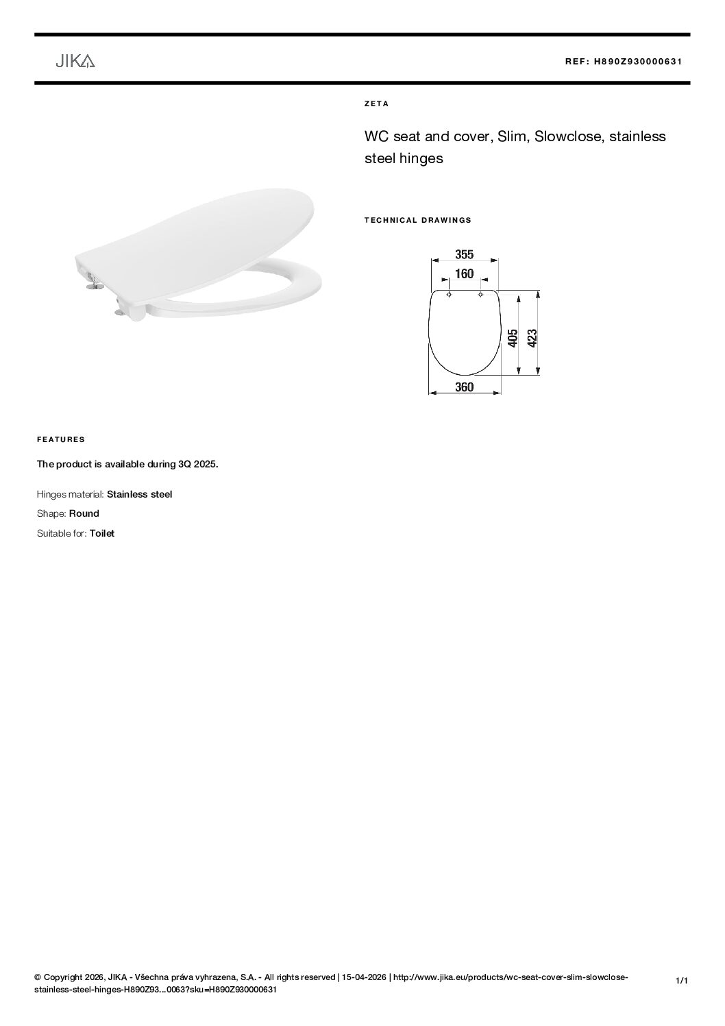 JIKA Zeta klozeto dangtis SLIM su Soft Close funkcija ir yra aukštos kokybės dangtis pagamintas iš duroplasto, kad būtų pasiekta maksimali higieniška švara.