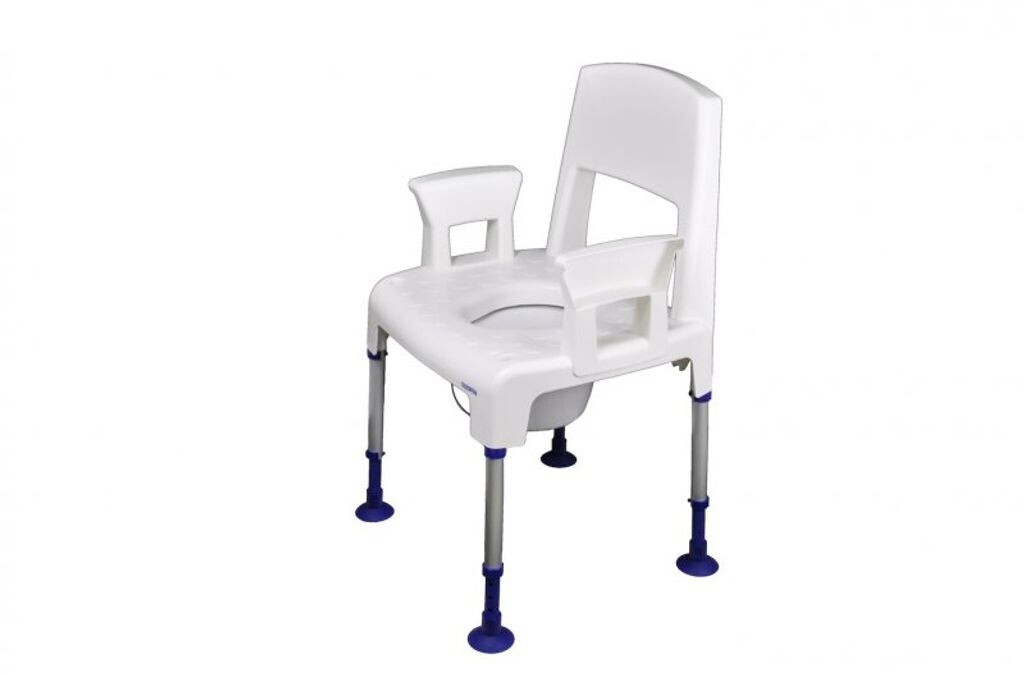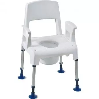 Tualeto-dušo kėdė Pico 3in1, iki 160kg. Multifunkcinė reguliuojamo aukščio kėdė (sėdynės aukštis 42,5 – 57,5 cm). Iš atskirų modulių (sėdynės, porankių ir atlošo) susidedanti tualeto-dušo kėdė lengvai ir greitai pritaikoma įvairioms situacijoms. Sėdynė su skylutėmis vandeniui nubėgti ir higienine išpjova, kuri gali būti naudojama iš priekio arba iš galo, nes sėdynę galima apsukti. Reguliuojamo aukščio sėdynė, kojelės su specialiais antgaliais – prisisiurbiančiomis taurelėmis, kad kėdė neslidinėtų ant dušo grindų. Tualeto-dušo kėdė pagaminta iš ypač tvirto plastiko su užapvalintais kampais, nėra aštrių briaunų, nerūdijančio metalo rėmas. Porankiai ir atlošas lengvai nuimami ir uždedami, tam nereikia jokių įrankių. Reguliuojamo aukščio sėdynė 42,5-57,5 cm. Maksimali apkrova net 160 kg.