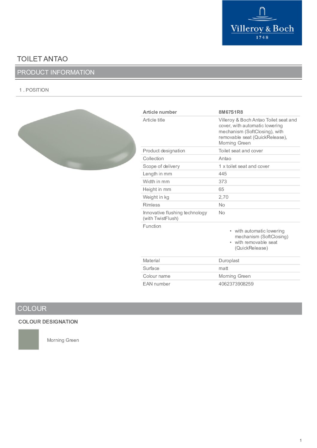 VILLEROY&BOCH Antao unitazo sėdynė harmoningai suderina su tualetu. Itin tyliai užsidarantis klozeto dangtis dėl SoftClosing. QuickRelease – itin paprastas tualeto sėdynės nuėmimas ir pakeitimas.