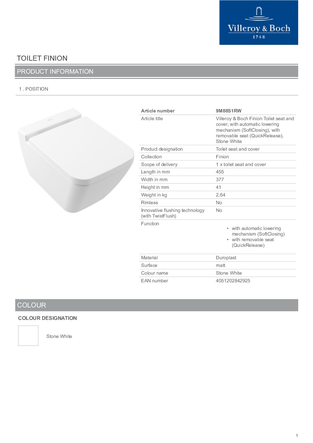 - Tinka Villeroy & Boch Finion serijos klozetų modeliams: 4664R0.